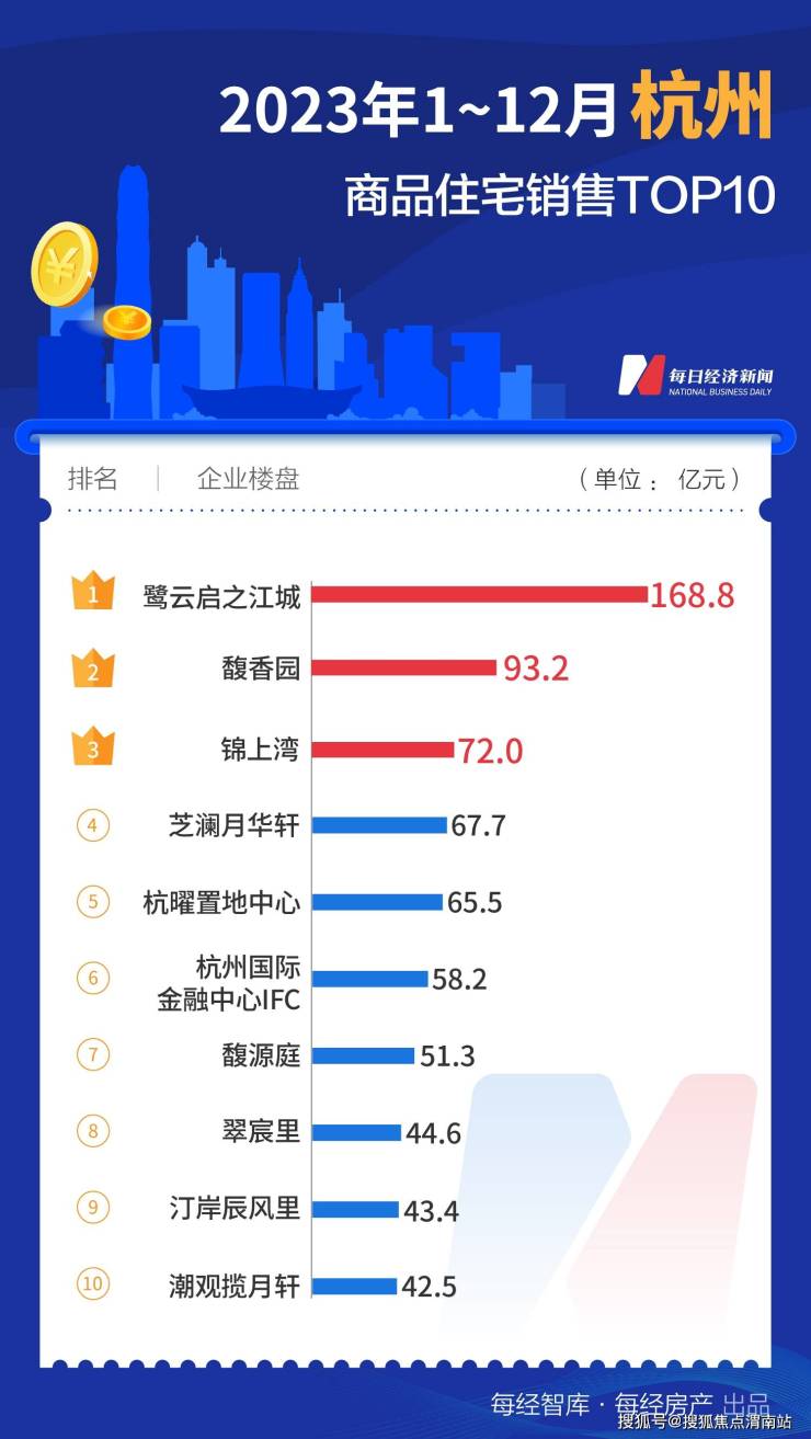 杭州以707.2亿元成为TOP10合计销售全国第二的城市,广州、深圳均不足700亿元。