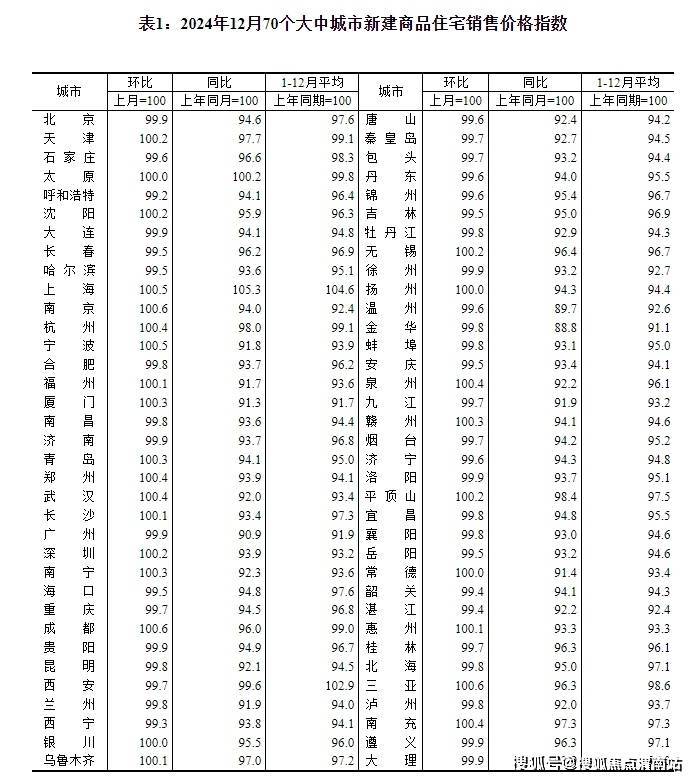 1月17日,国家统计局发布2024年12月份70个大中城市商品住宅销售价格变动情况。2024年12月份,70个大中城市中,一线城市商品住宅销售价格环比上涨,二三线城市环比总体降幅收窄;一二三线城市同比降幅均继续收窄。