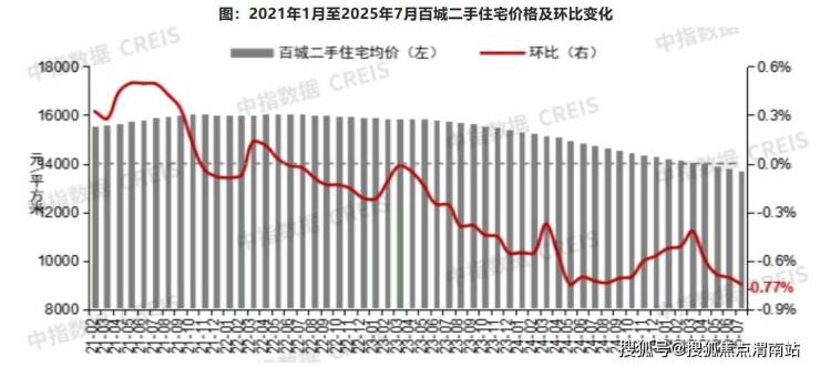 据中指研究院数据,7月百城二手住宅均价为13585元/平方米,环比下跌0.77%,同比下跌7.32%。