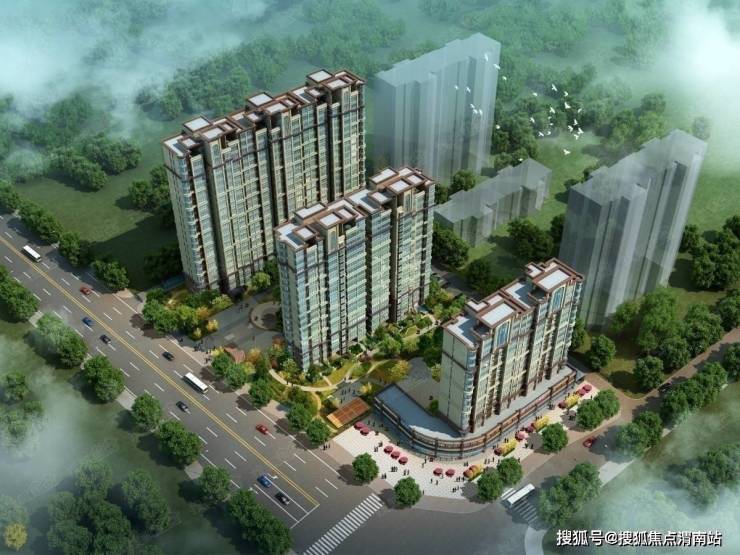 小区由3栋楼组成,临西南京路1号楼为(2+13)商业纯板式住宅,中部2号楼(17+1),北部3号楼(21+1)均为两梯三户的小高层住宅,渐高排列有效地迎合了风水祥瑞,并且遮挡冬季寒冷的西北风进入,有利于夏季的东南风从院落内通过,从而避免建筑间产生空气滞留的问题,使社区居民能够获取较好的空气质量和良好的采光观景。