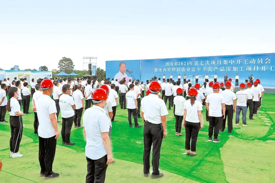 7月22日上午2021年全市第七次项目集中开工动员会在陕西样样祥乳业富平羊乳产品深加工项目建设现场举行