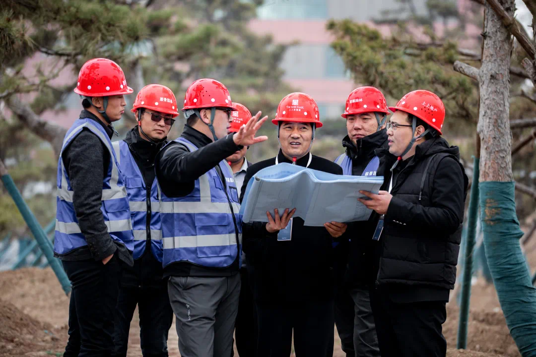 仪式后,双方主要负责人针对中央公园施工进度及松韵景墙,展开园林景观设计图纸,进行深入细致的研讨交流。