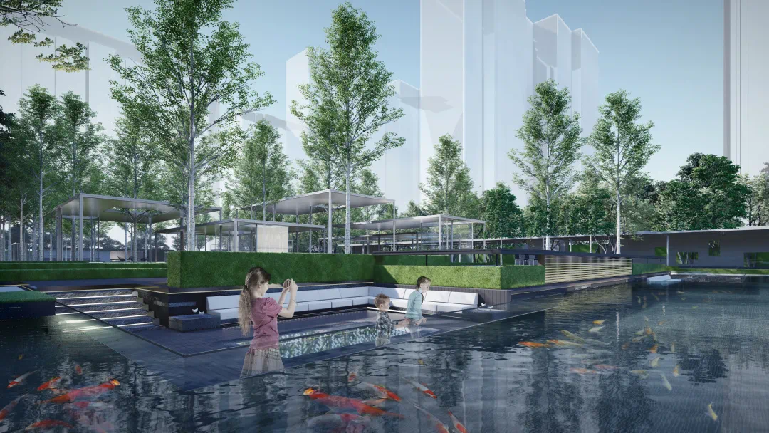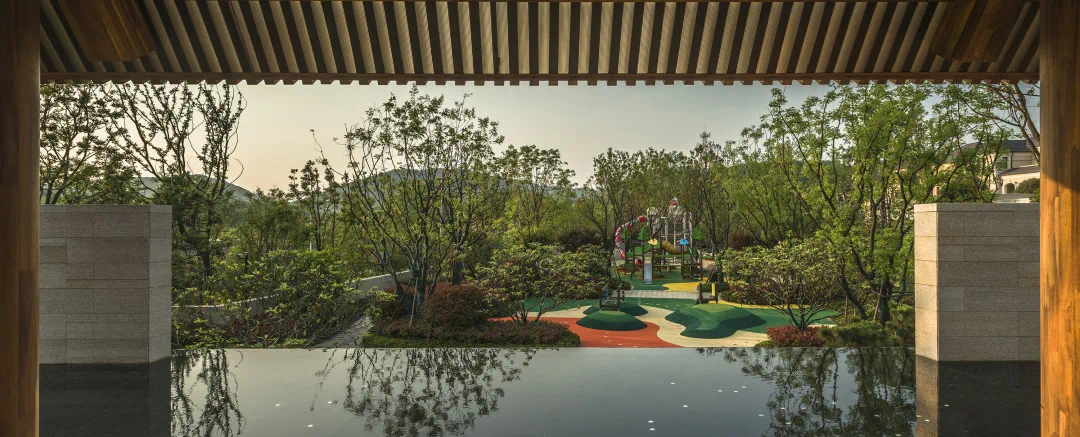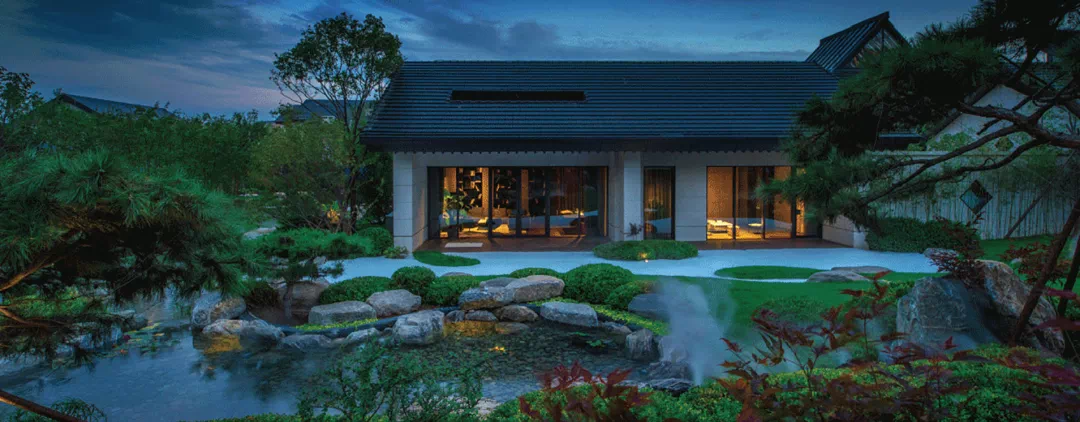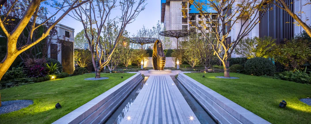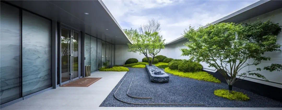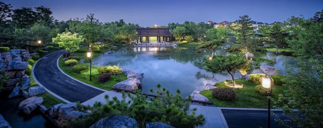 上上玫瑰园,在造园过程中不惜斥巨资,从全国各地严选黑松、乌桕、朴树等大型珍稀树种。为找到符合设计标准的苗木,团队多次跋涉千里、上山入林。从运输到移植需要克服重重困难。在后期,还将聘请专业的日本师傅进行培育和塑形。整体景观汲取新山水造园手法,遵循大地的肌理,融入森林、湖泊、坡地等自然意境,并以“六重沉浸式”园林景观实现人与自然的相互交融,只为给居者营造一个现代的、自然的、艺术的、亲密的山水生活剧场。