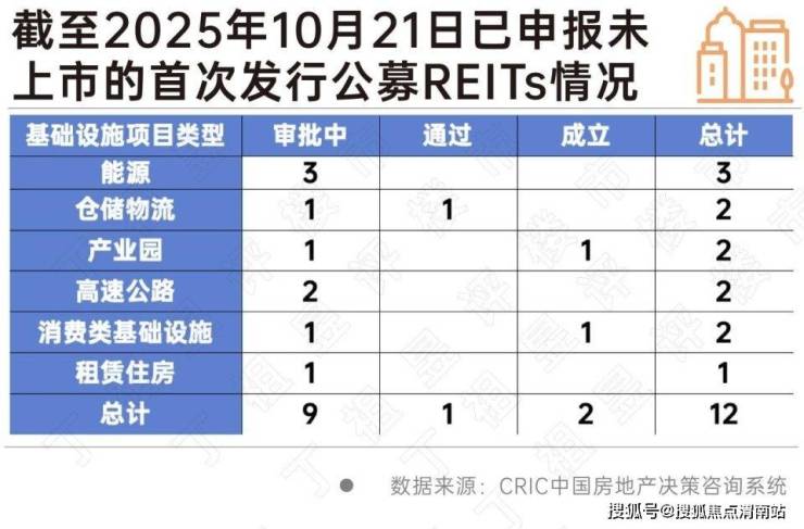 截至2025年10月21日,共有12只首次发行的公募REITs产品处于已申报还未上市阶段,预计年底之前仍将有数只公募REITs产品完成上市。