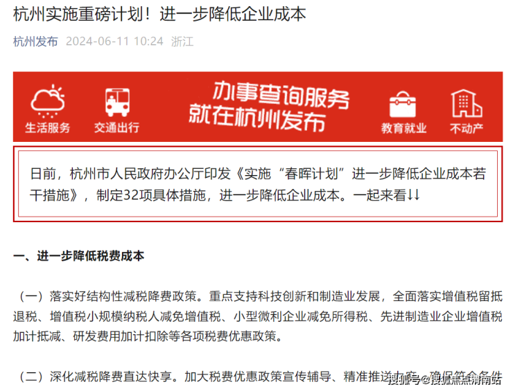 6月11日,据“杭州发布”微信公众号,杭州市政府办公厅日前印发《实施“春晖计划”进一步降低企业成本若干措施》(以下简称《措施》),制定32项具体措施,进一步降低企业成本。