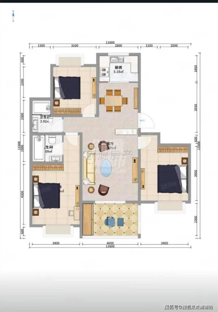 3、宏帆人和府 129㎡三室两厅两位 毛坯 75万满二可按揭
