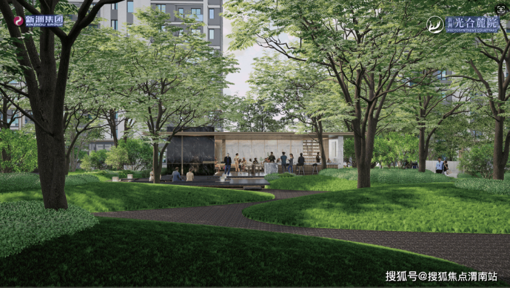 ③八园十院串联起“水云双轴”:在渭南,很少有开发商为了景观牺牲楼栋的,而新洲·光合麓院不惜拔掉中央黄金楼栋,打造 16000㎡超大景观公园,将家安在公园里的居住理想照进现实。