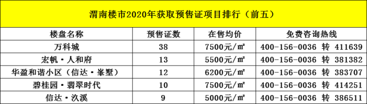 三、渭南楼市2020年新房市场供应——预售证