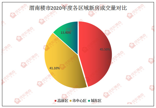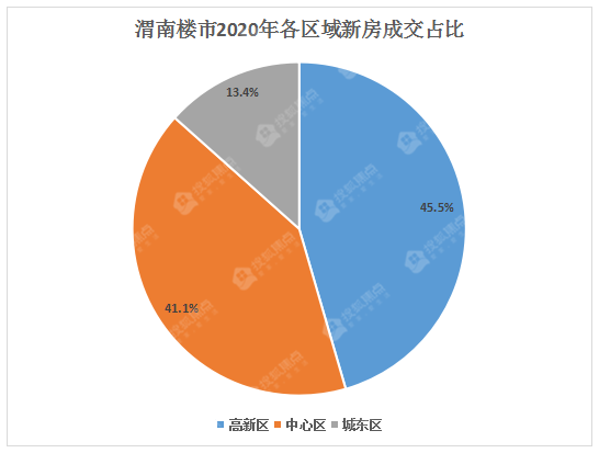 渭南楼市2020年各区域新房成交占比中,高新区占比45.5%,中心区占比41.1%,老城区占比13.4%。