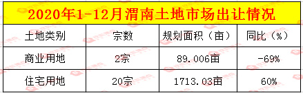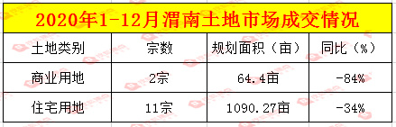 一、2020年1-12月份渭南市国有土地挂牌出让情况: