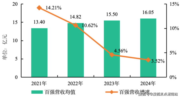 2021~2024年百强企业营业收入均值与增速情况 来源:中指研究院