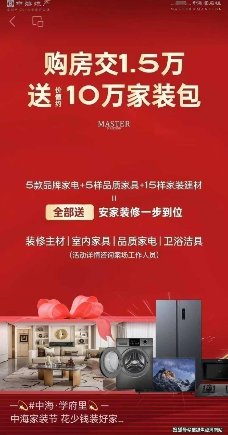2025年6月,中海学府里购房交1.5万,送价值约10万家装礼包👍🏻