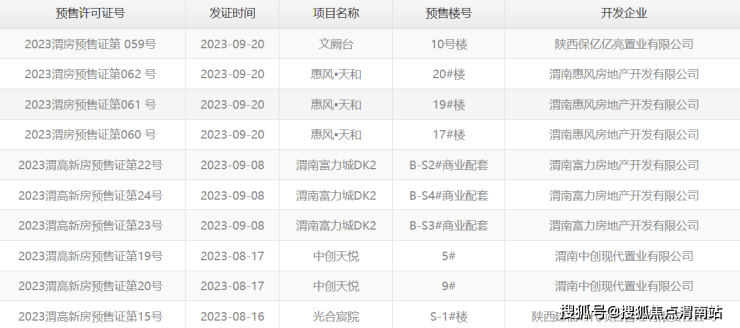 五、渭南楼市上周(2023年10月2日-8日)预售证公示信息
