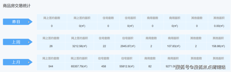 环比上周,总成交下跌71套,其中签约面积下跌8586.89㎡;住宅下跌74套,住宅面积下跌8787.51㎡;商用套数上涨2套,商用面积上涨107.83㎡;其他套数上涨1套,其他面积上涨92.79㎡。