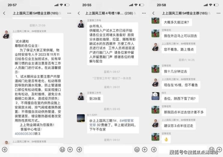上上国风三期3-6号楼本年度是第一次供暖,需提前对每栋楼的热计量室进行检修,同时每栋楼的楼宇管家,及时在业主群里发布工作进展信息,根据业主实际情况制定入户服务时间,提醒业主留人开门,及时配合工作,这项流程极大地方便了业主,完全不影响业主的上班时间。