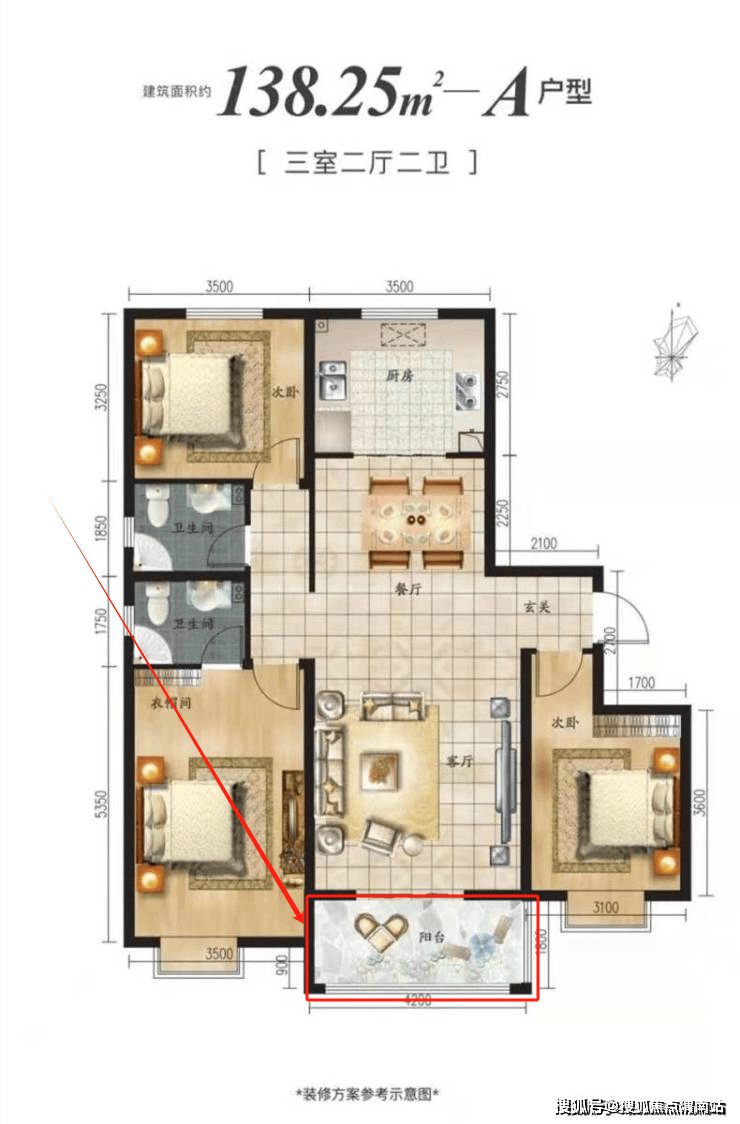 广青东府建面约138㎡三室两厅两卫户型,做到三开间朝南、南北通透,南向铺开了约11米的巨大采光面。什么概念?可以充分保证所有南向房间充沛的阳光与空气的流通!除此以外,广青东府建面约138㎡户型真正做到了全明无暗房,且主卧卫生间还自带飘窗,采光无死角,室内空间流通性好。