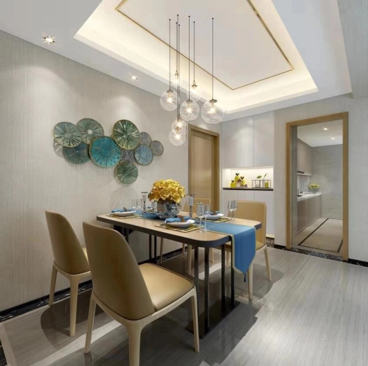餐厅客厅一体设计,客餐厅位置相连,空间规整,方便实用