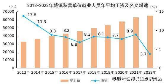 ● 2022年全国城镇私营单位就业人员年平均工资为65237元,比上年增加2353元,名义增长3.7%。
