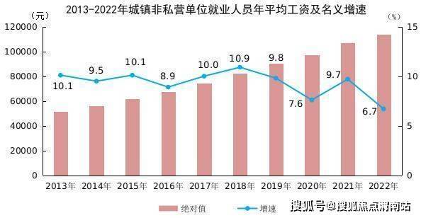 2022年全国城镇非私营单位就业人员年平均工资为114029元,比上年增加7192元,名义增长6.7%。扣除价格因素,2022年全国城镇非私营单位就业人员年平均工资实际增长4.6%。