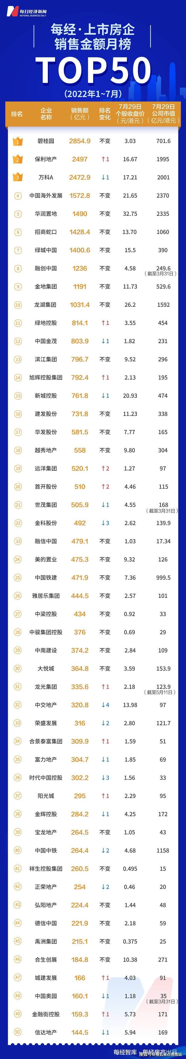 卷不动了!7月TOP50上市房企前三甲业绩仅为去年同期的54%