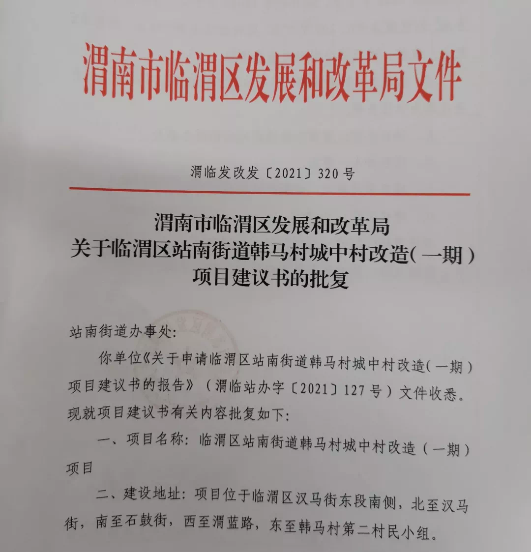 总投资3.75亿元的临渭区站南街道韩马村城中村改造(一期)项目