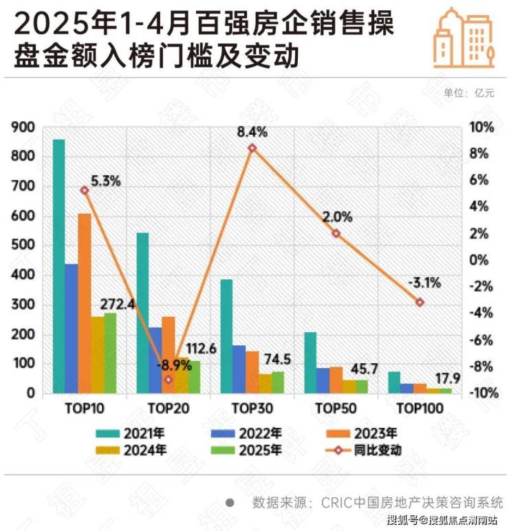 从各梯队门槛变化来看,2025年4月,TOP100房企各梯队销售门槛变动出现一定分化。