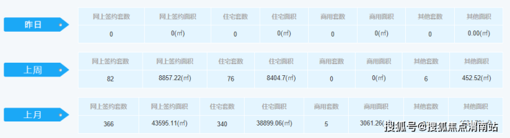 环比上周,总成交不变,其中签约面积下降134.51㎡;住宅增长2套,其中面积下降110.12㎡;商用套数下降3套,商用面积下降339.81㎡;其他套数上涨1套,其他面积上涨315.42㎡。