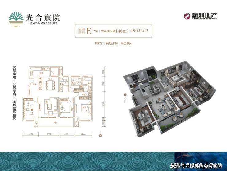 下图,光合宸院多层纯板墅质洋房E户型146㎡(3室2厅2卫),渭南楼市罕见4面朝阳设计,采光面更足,通风效果更好。户型整体动静分离,面积适中,是刚改和改善群体不可多得的优质之选。