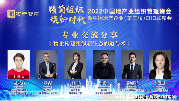 在可研智库 创始⼈兼总经理 、亿翰智库事业合伙⼈ 贾春晖主持下,路劲集团 副总裁、物业管理中心总经理 许昕,新希望服务 执行董事兼首席执行官 陈静,旭辉永升服务 副总裁兼首席人力资源官 梁斌,融创服务 组织人才发展中心总经理 张东浩,卓越商企 首席人力资源官 张燕等受邀嘉宾进行了物企专业交流分享。