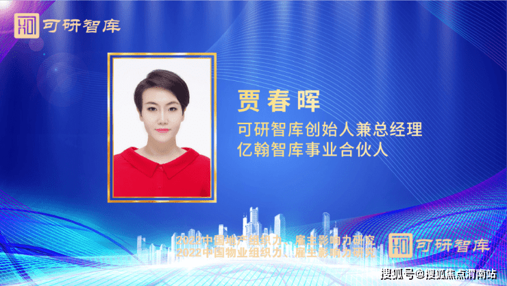 随后,贾春晖详细发布了可研智库在中国地产、物业双航道组织力、雇主影响力领域的研究成果。