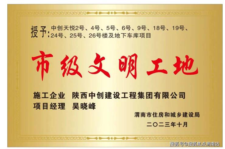 匠心筑家,诚信护航。据悉,中创·天悦项目凭借科学严谨的管理工作和扎实过硬的工程质量,荣获2023年度省级文明工地和优秀项目部称号。