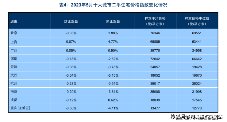 根据《百城价格指数报告》,2023年5月,全国100个城市新建住宅平均价格为16180元/平方米,环比止涨转跌,跌幅为0.01%。全国100个城市二手住宅平均价格为15786元/平方米,环比下跌0.25%,跌幅较上月扩大0.11个百分点。