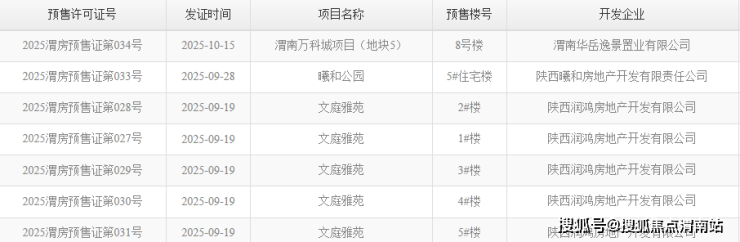 五、渭南楼市上周(2025年11月3日-11月7日)预售证公示信息