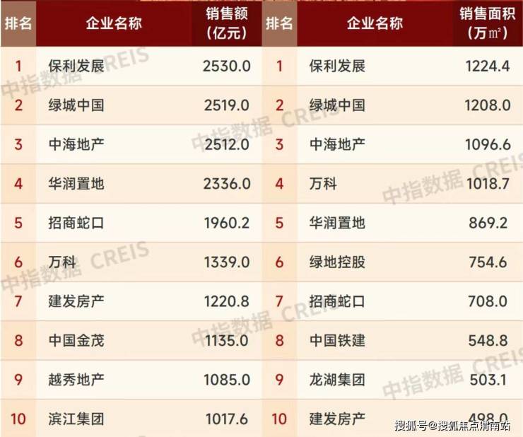 12月31日,中指研究院、克而瑞、亿翰智库等机构发布2025年房地产企业业绩。据中指研究院,保利发展、绿城中国、中海地产、华润置地4家房企全年销售额均超2000亿元。其中,保利发展2530亿元、绿城中国2519亿元、中海地产2512亿元、华润置地2336亿元。