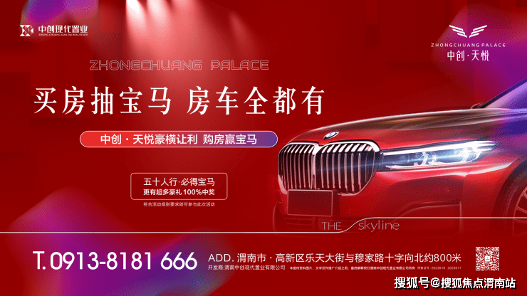 中创·天悦近期活动买房抽宝马,房车全都有!即日起中创·天悦豪横让利,购房赢宝马。五十人行·必得宝马,更有超多豪礼100%中奖。