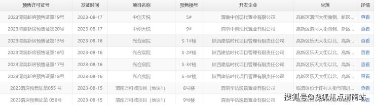 其中,渭南万科从8#楼177套房源、9#楼213套房源;中创·天悦9#楼154套房源、5#楼78套房源;住宅部分合计622套房源;