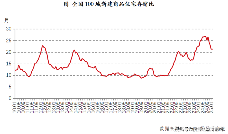 从去化周期方面看,截至2025年1月,全国百城新建商品住宅去化周期为21.3个月,虽仍高于合理区间(12-14个月),但较去年峰值(26.8个月)大幅下降。