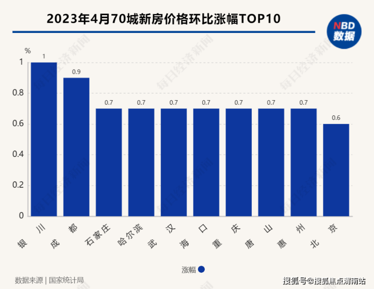 具体到城市来看,银川4月新房价格环比涨幅领跑70城,达到1%;同比上涨2.6%,在70城中排名第9;石家庄、海口等前期跌幅较大的城市,4月份也跻身环比涨幅前十名,而成都、杭州、南京、合肥等二线城市同比涨幅排在前列。