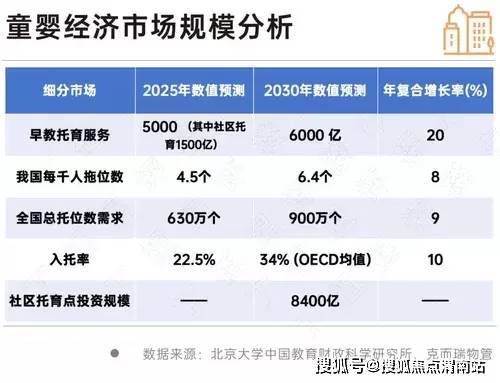 目前我国社区托育市场存在供给与需求之间的巨大结构性不足,缺乏家门口的、可信赖的、普惠的托育服务,数据显示:到2030年,全国托位数缺口将高达900万个,导致我国入托率仅22.5%,远低于发达国家平均水平,大量需求被压抑。正是这种供需失衡,推动早教托育服务市场以20%的年复合增长率逆势上扬,其中,与我们业务模式最契合的社区托育,2025年市场规模预计将达1500亿元。这也为身处社区一线的物业企业,提供了优秀的战略机遇。