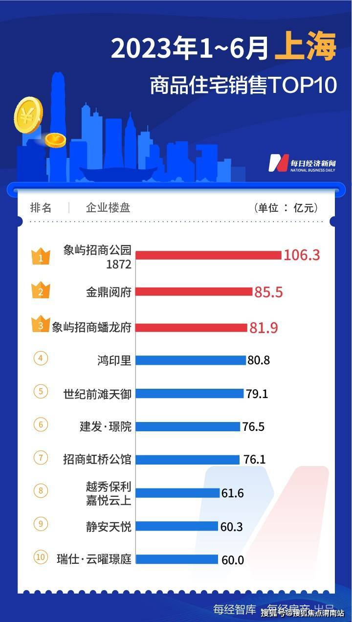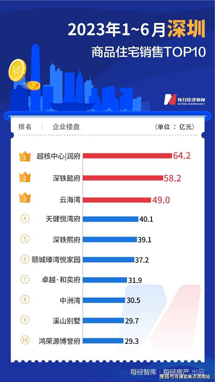 国央企成为最大赢家,其中,招商蛇口入榜8个项目,全口径销售额341.2亿元;保利入榜14个项目,全口径销售317.9亿元;万科、中海分别销售297亿元和280亿元。