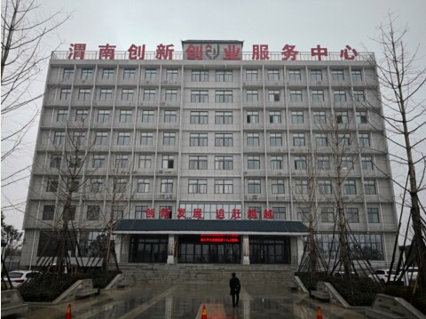 11时40分,记者到位于塬上的临渭区创新创业基地采访。见到了这座外观宏伟的8层办公楼。招商部的一位女同志告诉记者,办公大楼已投入使用一年了。